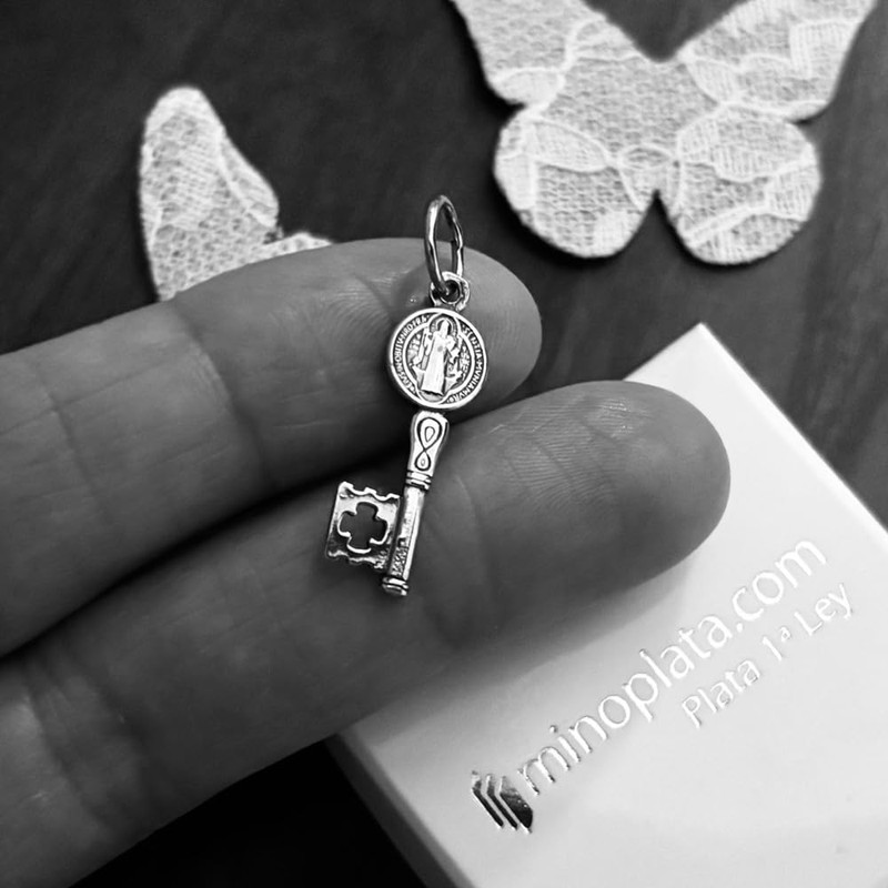 - 925 Sterling Silver San Benito Key Pendant with Saint Benedict Key on Both Sides in Antique 925 Sterling Silver