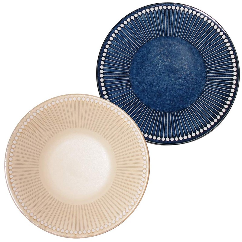 Minoru Pottery Mino Ware Albee, 220 Plates, Set of 2 Colors (Navy, Beige)