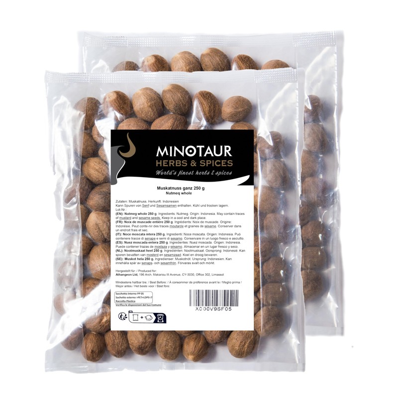 Minotaur Spices Nutmeg Whole 2 x 250 g (0.5 kg) Approx. 100-130 Pieces (depending on the size of the nut)