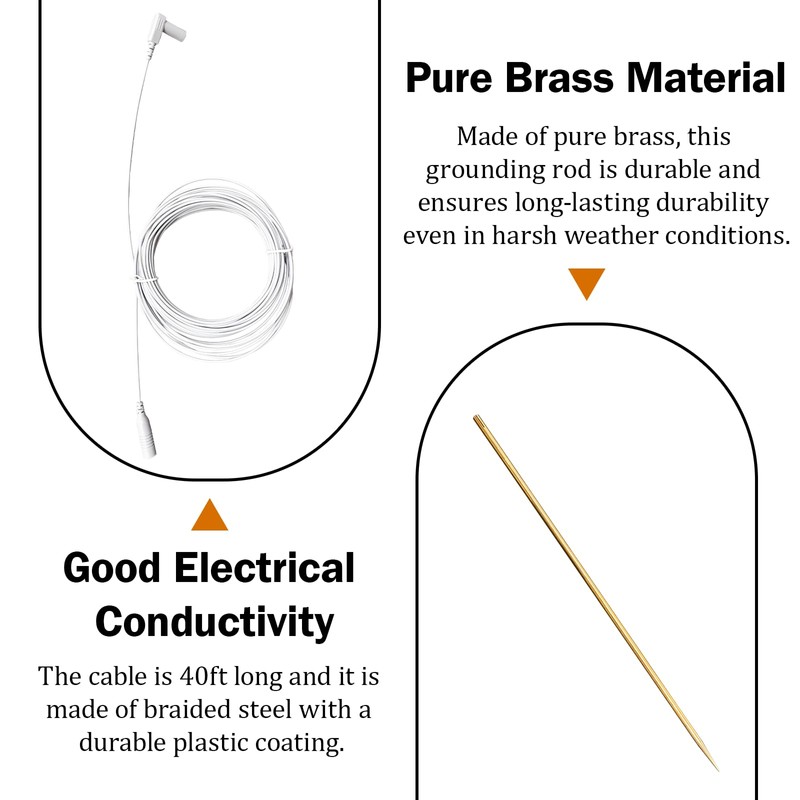 - Easy to Use: The ground rod kit is easy to use, just push the ground rod into the outdoor soil (recommended depth of 8-10 inches), connect one end of the 40-foot ground wire to the top of the ground rod, connect the other end in turn with your ground wire and grounding products, such as grounding mats, grounding sheets, grounding carpets, etc.