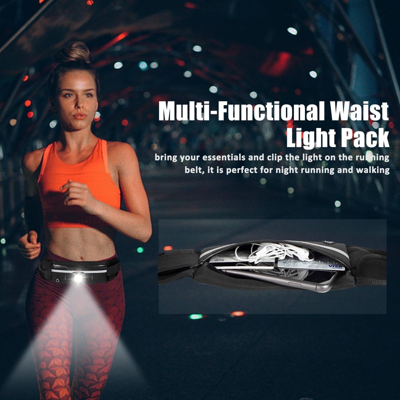 Minsk Running Lights, 1000Lumens Wearable Light Clip on Waist Belt, Super Bright COB Light with Adjustable Large Fanny Packet for Running, Walking, Hiking at Night(Waistlight)