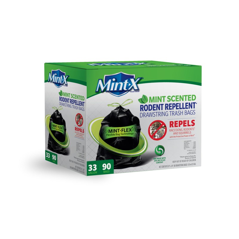 - RODENT REPELLENT TRASH BAGS: Mint-X's patented Rodent Repellent Technology is a humane, safe solution to the problem of foraging rodents, raccoons and squirrels