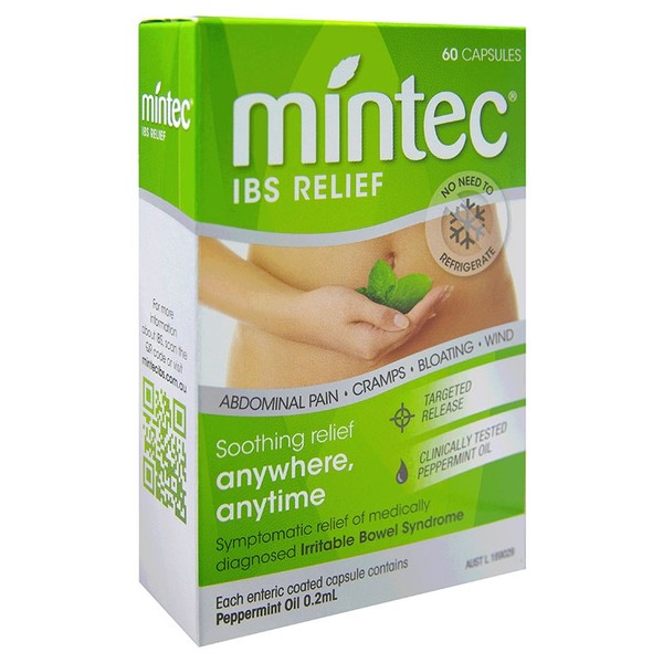 Mintec capsules are specially coated so that they pass through the stomach and the first part of the bowel intact. This delays the release of the peppermint oil until the capsule reaches the part of the bowel that is causing the symptoms. Mintec acts directly to relax the muscle of the bowel, which relieves the abdominal pain, bloating and wind. Mintec is available without a prescription in cartons of 20 and 60 enteric coated capsules. Each capsule contains 0.2mL of pure peppermint oil.