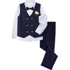 mintgreen Boys Suits, Kids Wedding Outfit Gentleman Waistcoat Long Sleeves Clothes Set, Navy Blue, 9-10 Years, 150