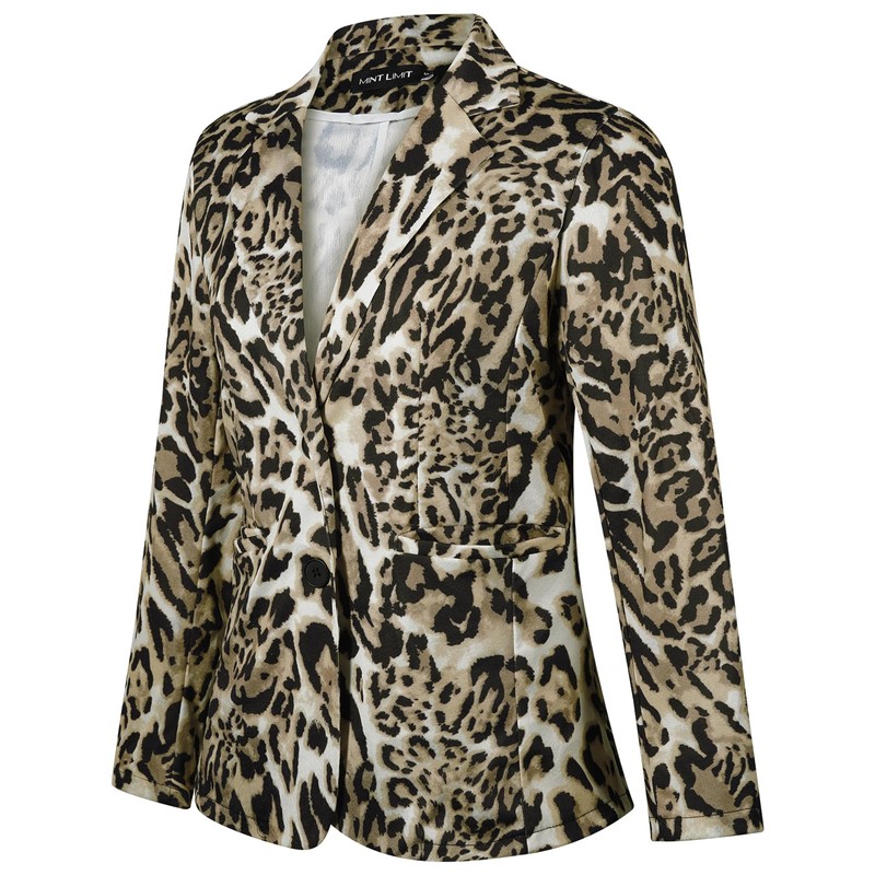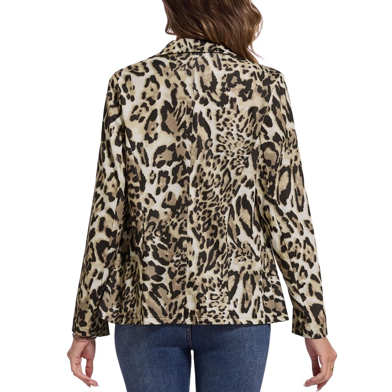 MINTLIMIT Women's Animal Printed Blazers Open Front 3/4 Sleeve Blazer Jacket Outerwear with Pockets (Leopard, Size 2XL)