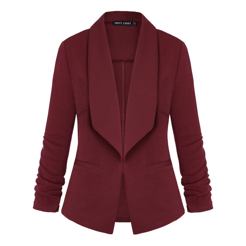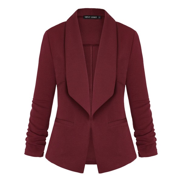 MINTLIMIT Women's Solid Patterned Formal Single Button Up Blazer Jacket,Burgundy,L