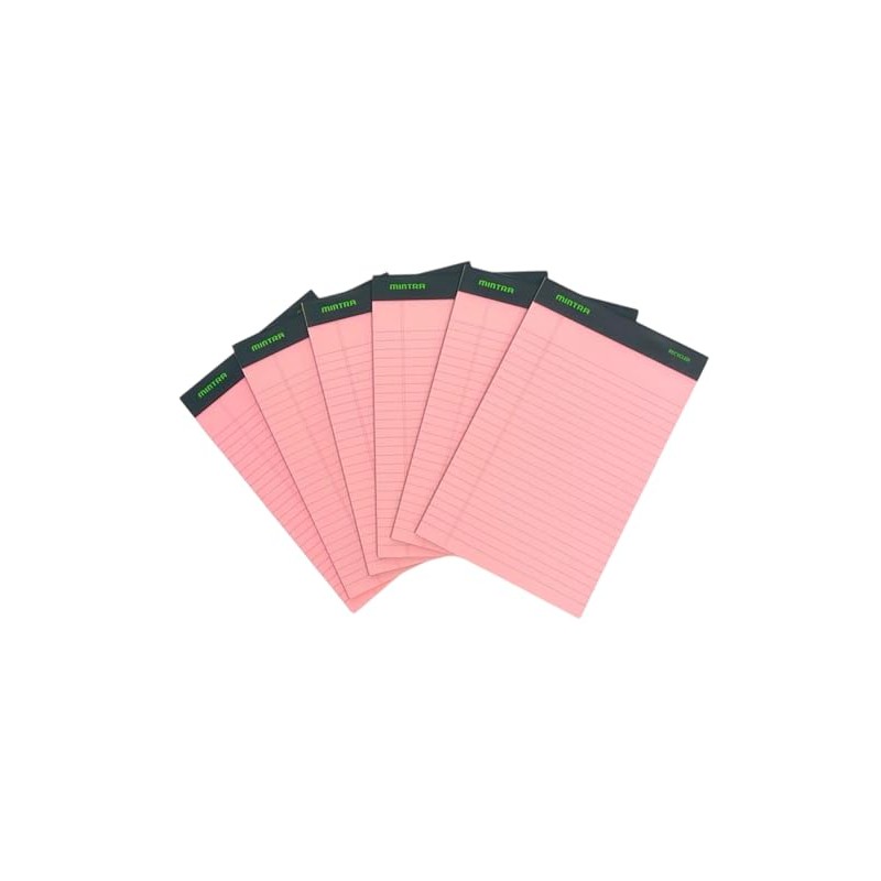 Mintra Office Recycled Writing Pads 6pk (Pink, Junior (5in x 8in)) - Pink Legal Pads, 50 Sheets per Notepad, Micro perforated, Notebook Paper for School, College, Office, Business