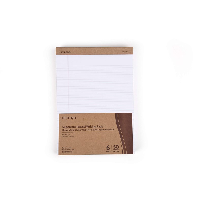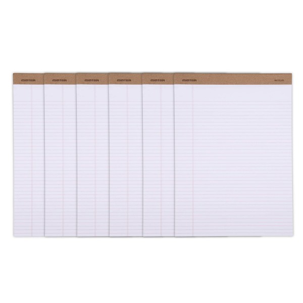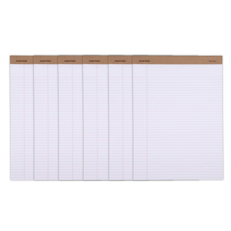 Mintra Office Recycled Writing Pads 6pk (White, Narrow Ruled (8.5in x 11in)) - 50 Sheets per Notepad, Micro perforated, Legal Pad, Notebook Paper for School, College, Office, Business