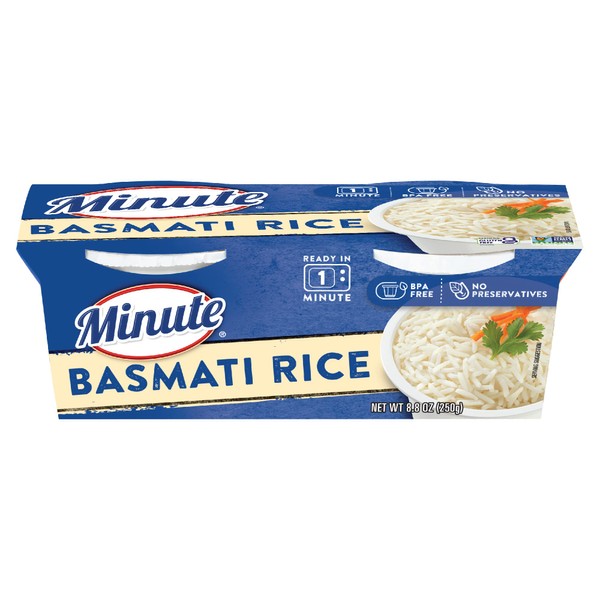 Minute RTS Basmati Rice, 2 - 4.4 Ounce Cups (Pack of 8), White