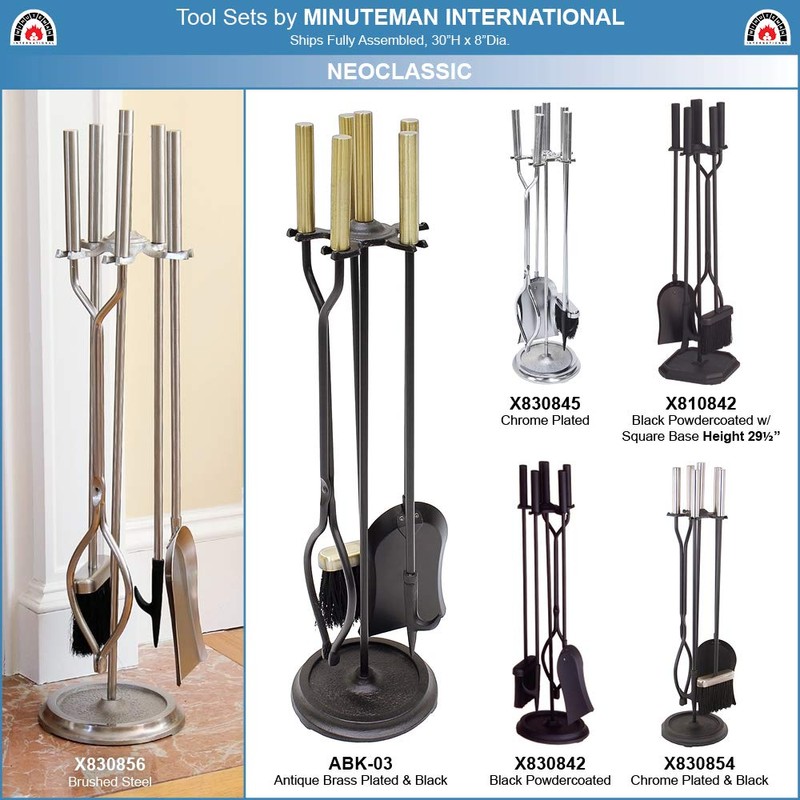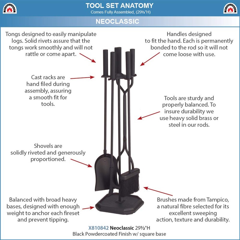 Minuteman International Neoclassic 5-piece Fireplace Tool Set, Black, Square Base