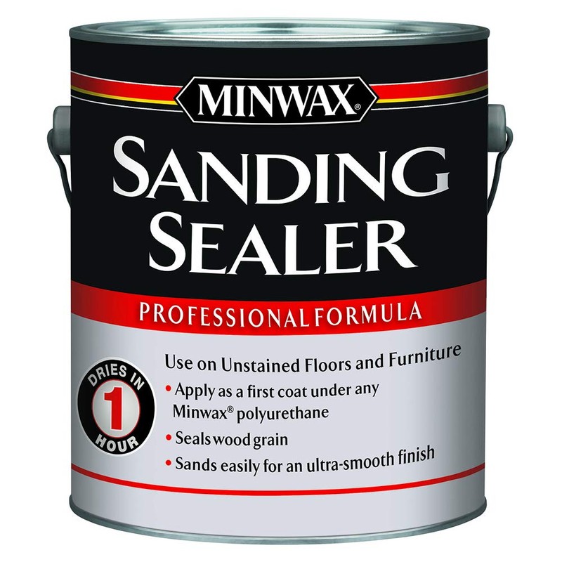 Minwax Professional Formula Sanding Sealer is a clear sealer formulated for application over bare wood.