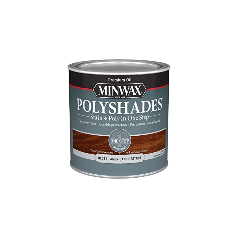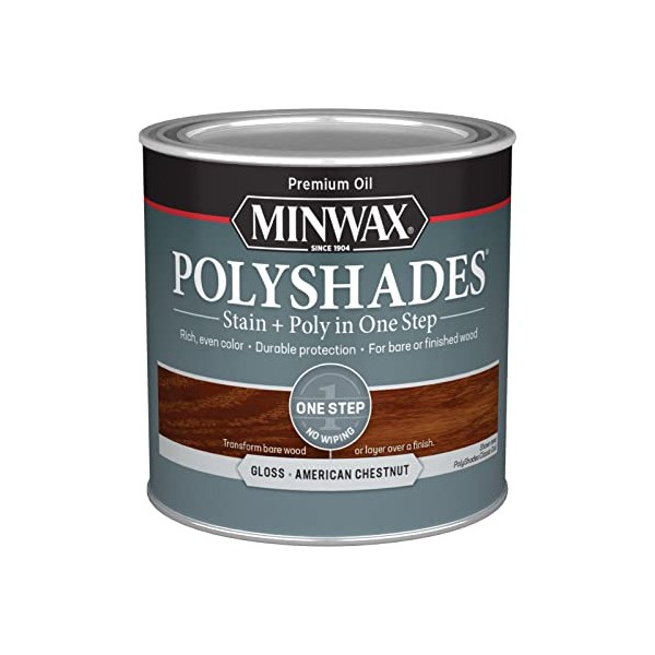 Minwax PolyShades Wood Stain + Polyurethane Finish – ½ Pint, American Chestnut, Gloss