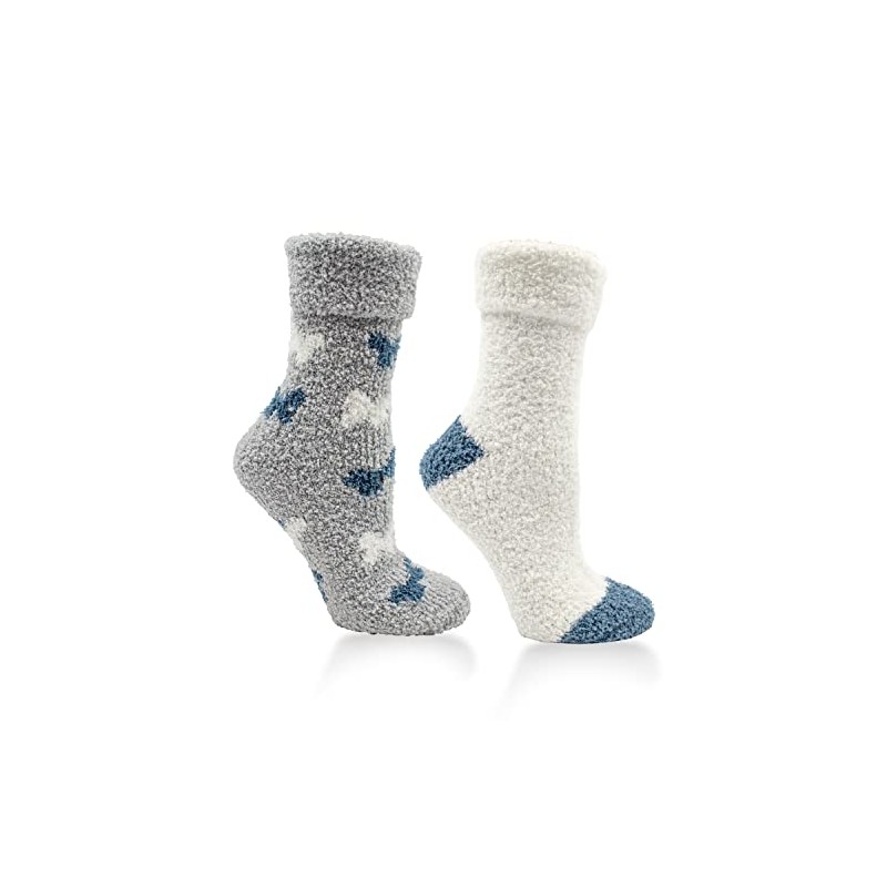 MinxNY 2 pair pack sock - Butterfly pattern Rose N Shea Butter Infused One pair pattern One pair color blockW/Non-Skid Bottom Rose Scented Velvet Sachet, French Blue