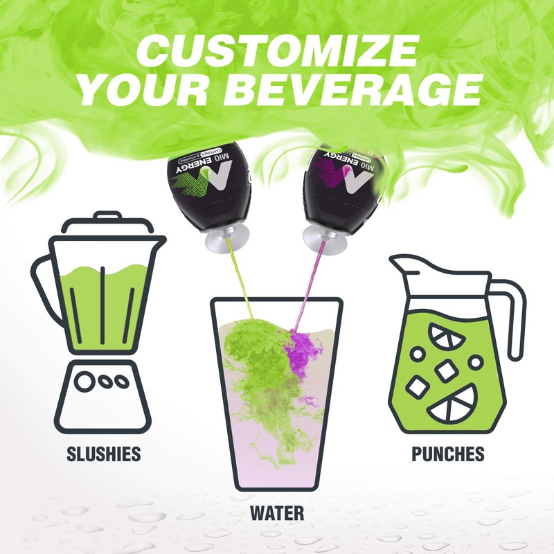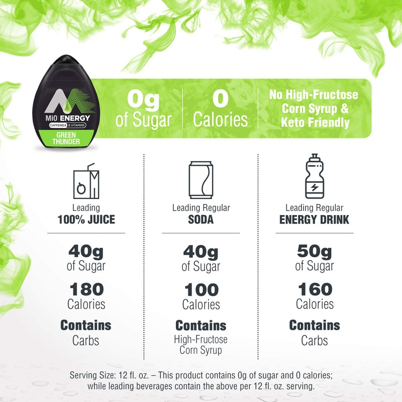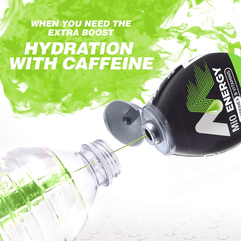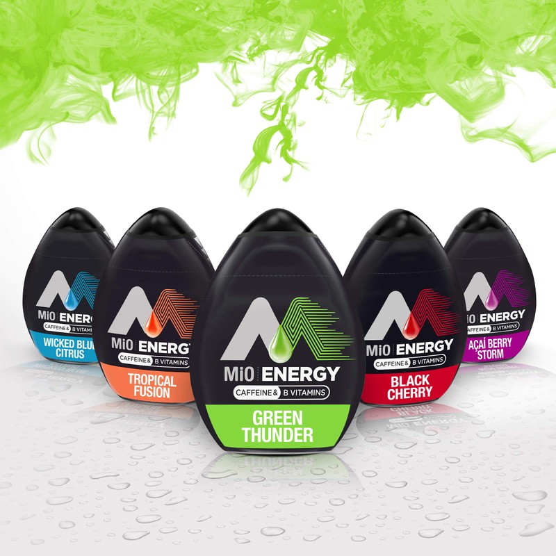 - Give water a boost of caffeine and B vitamins with MiO Energy Green Thunder Liquid Water Enhancer