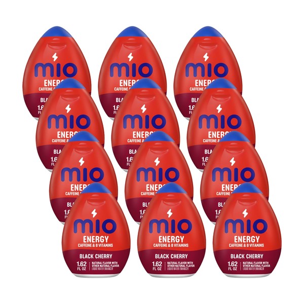 - Give water a boost of caffeine and B vitamins with Mio Energy Naturally Flavored Black Cherry Liquid Water Enhancer