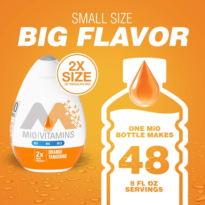- WE FIX WATER: Add some fruity flavor to your day with MiO Orange Tangerine Liquid Water Enhancer, offered in a larger bottle with 2x more product