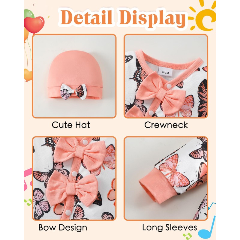 Mioglrie newborn girl outfits baby rompers girl fall winter clothes Pink Butterfly cute outfits preemie jumpsuit