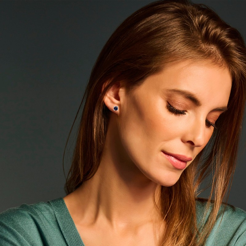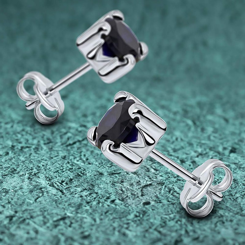 - Real 9ct Earrings with Gemstone: Lightweight stud earrings set with 2 created blue sapphires 1.25ct in a 4-prong setting. The sapphires are September's birthstone. The studs are beautiful on their own or combined with other ear piercings. They are made in solid 9 carat white gold with post and butterfly for a snug fit.