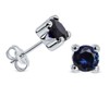 Miore 4-Prong Gold Earrings for Women Solitaire Round Studs with Blue Sapphire Gems 1.25ct Made In White Gold 9ct 375, Ear Piercing Stud Earrings 5.5 x 5.5 mm with Jewellery Box