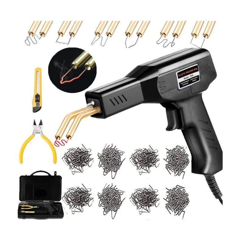 - What You Get:Comes with 1050PCS hot staples(300PCS 0.8mm wave staples, 150PCS 0.8mm flat staples,150PCS 0.6mm flat staples, 150PCS 0.6mm wave staples,150PCS 0.6mm M staples and 150PCS 0.8mm V staples)1*Plier, 1* Plastics Welding Machine,1*Suitcase & 24H Attentive Service.Meet a variety of plastic repairs with different shapes.