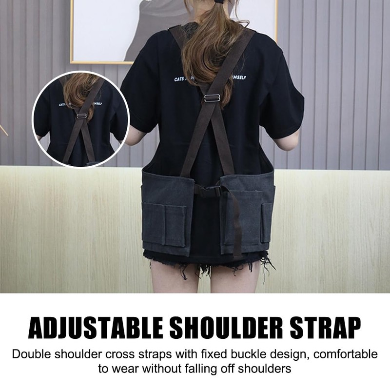 MiOYOOW Work Apron, Adjustable Canvas Kitchen Apron, Cross Back Apron with Multiple Pockets for Work, Kitchen, Garden, Home, Black / Grey