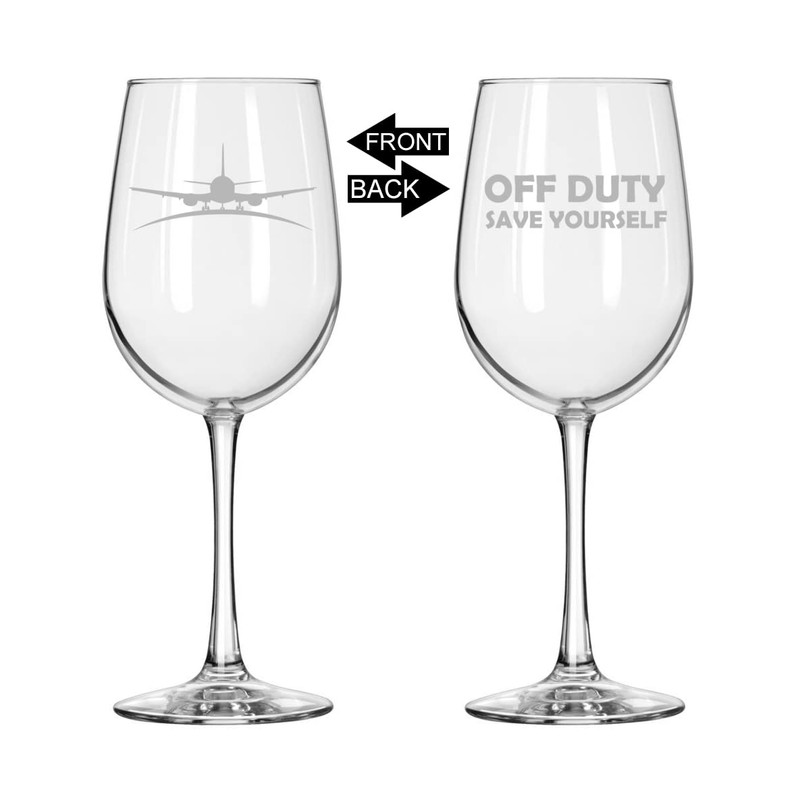 MIP Brand Wine Glass for Red or White Wine Two Sided Off Duty Save Yourself Airplane Pilot Flight Attendant (16 oz Tall Stemmed)