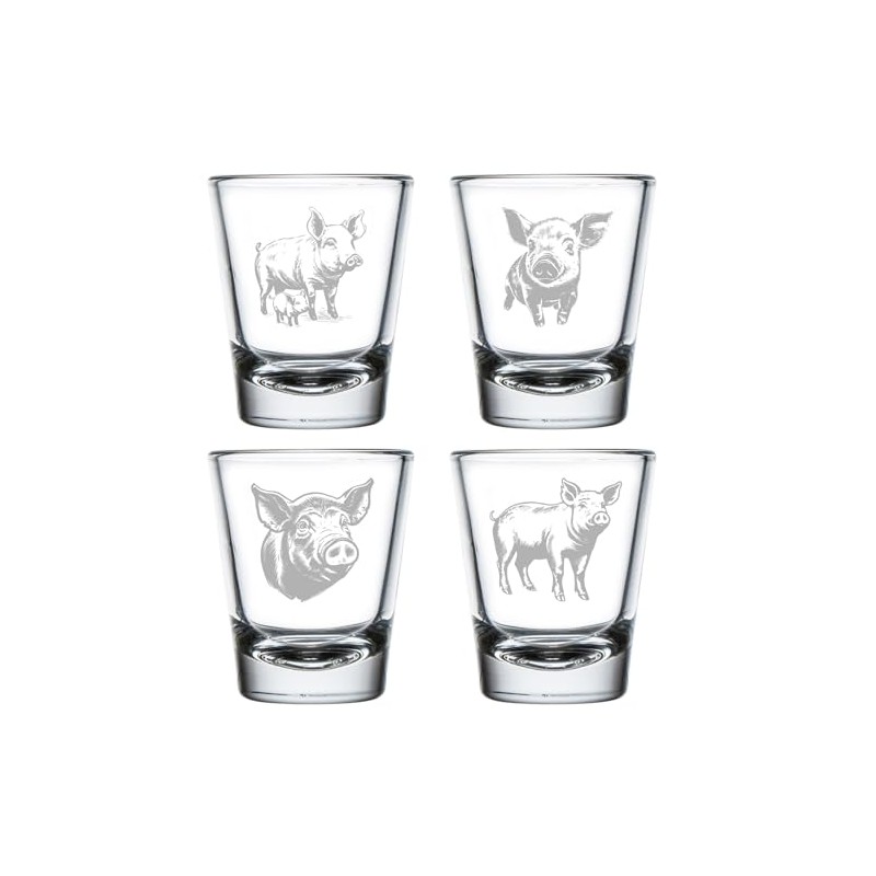 MIP Set of 4 Shot Glasses 1.75oz Shot Glass Gift Pig Collection