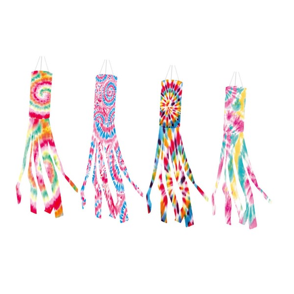 Mipcase 4Pcs Tie Dye Windsock Flags Durable Outdoor Hanging Decor for Garden Multi Purpose Wind Socks for Festivals and Parties Eye Catching Design