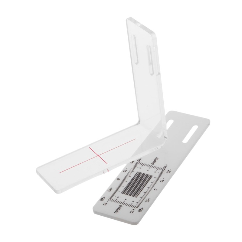 The L-shaped corner crack gauge is designed to monitor and measure cracks in wall corners accurately. Made from clear plastic, this tool allows for precise observation and recording of crack development over time. Its transparent design ensures easy visibility, making it an essential tool for maintaining structural integrity in various settings.