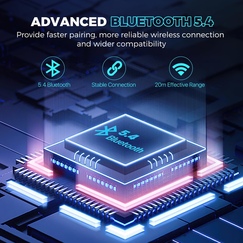 • Advanced Bluetooth 5.4 Connectivity: Bluetooth 5.4 provides enhanced sound quality, faster pairing, a more stable connection, and wider device compatibility. With a 10 M (33 feet) range, you can move freely without needing to stay close to your device