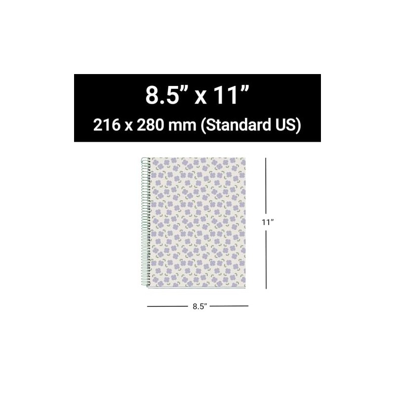 - 11" x 8.5" Four subject notebook with Violets design cardboard cover