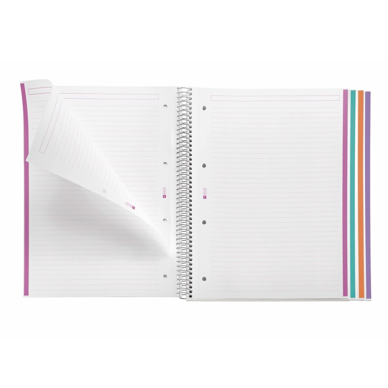 Miquelrius - A4 Notebook, 4 Colour Strips, 140 Sheets, Horizontal Lines 7 mm, 4 Holes, Micro Perforated, Hardback Cover, Alice