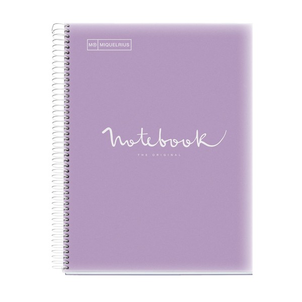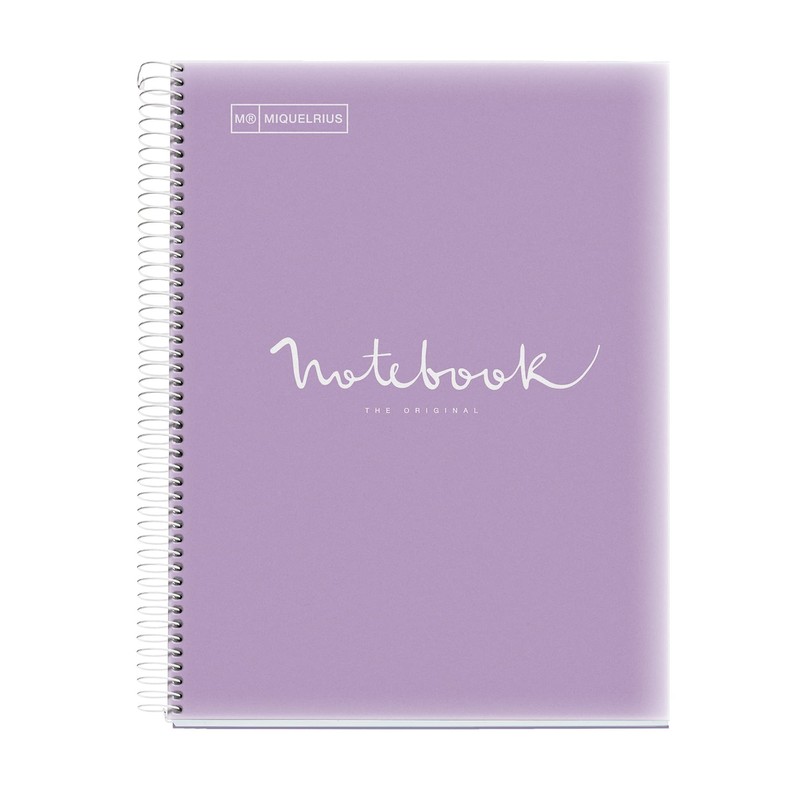 Miquelrius - Notebook A4 Notebook Emotions 120 Sheets 90 g/m², Horizontal Stripes 7 mm, 5 Coloured Stripes, Micro-Perforated Spiral, Polypropylene Cover, Lavender