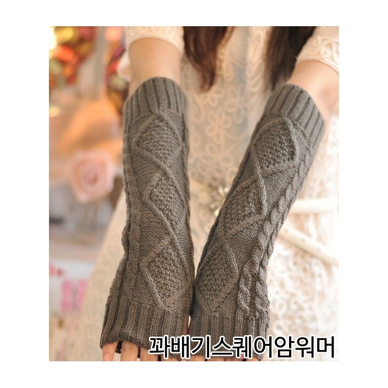 [Mir] Diamond Cable Knit Arm Warmers Diamond Cable Knit Arm Warmer - White 3ea