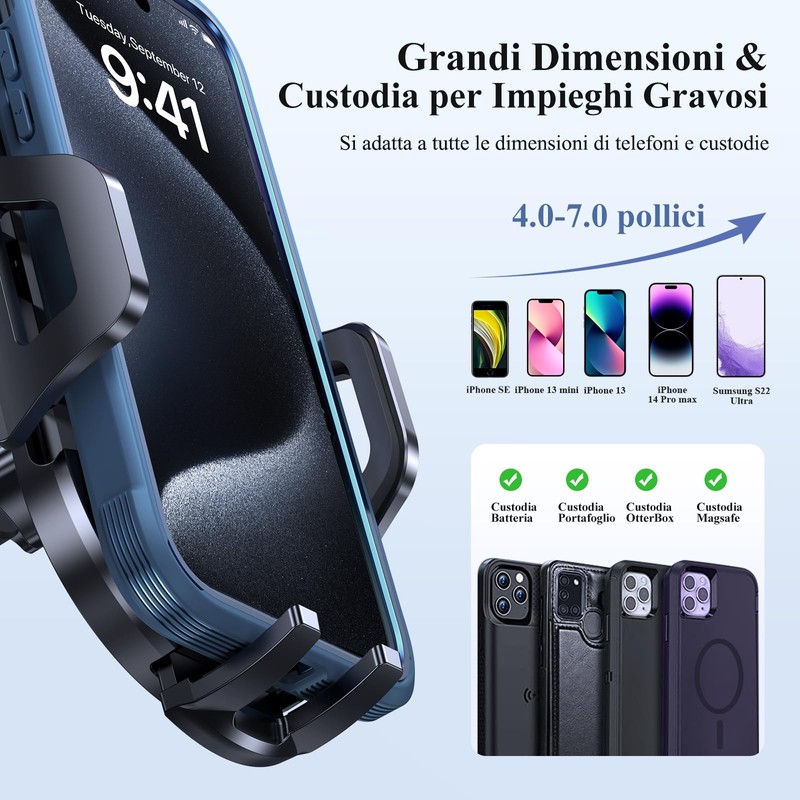 - Universal compatibility: the installation is quick and easy (10 seconds), adaptable to horizontal and vertical air vents of the car. Compatible with numerous smartphone models, such as iPhone 15 Pro Max/15 Pro/15/14 Pro Max/14 Pro/14 Plus/14/13 Pro Max/13 Pro/13/12 Pro Max/SE/11 Pro Max/11 Pro/11, Samsung Galaxy Note 20 Ultra/S23 Ultra/S23 Plus/S23/S22 Ultra/S2 2 Plus/S22/S21 FE/S20, Huawei, Xiao-Mi, Oppo and others.