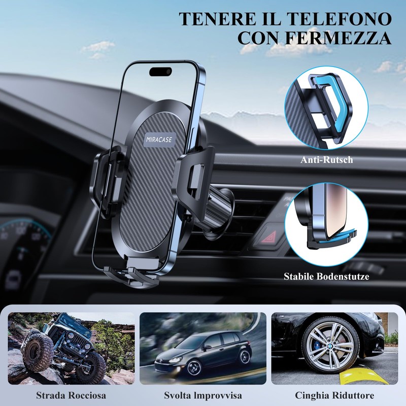 - 👍[One-button release] The Miracase car phone holder is equipped with a quick release button and adjustable locking arms that only need 0.5 seconds to lock or release your phone. Provide a safer ride when talking, surfing, listening to music or charging.
