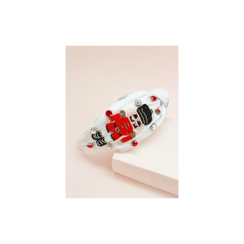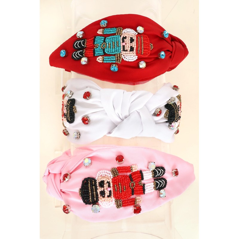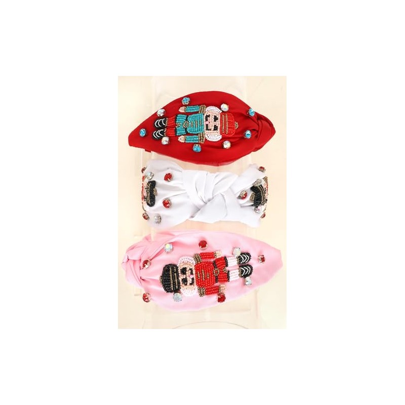Miracle Collection Cross Knotted Bead Christmas Tree, Santa, HOHOHO,Candy Cane Headbands for Christmas Holiday Gift. (Nutcracker-WT)