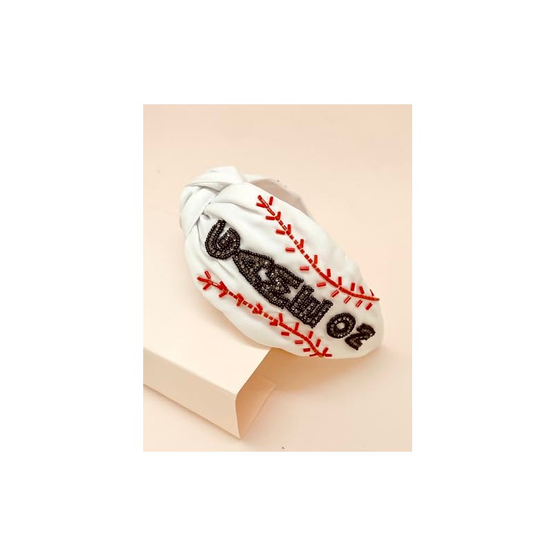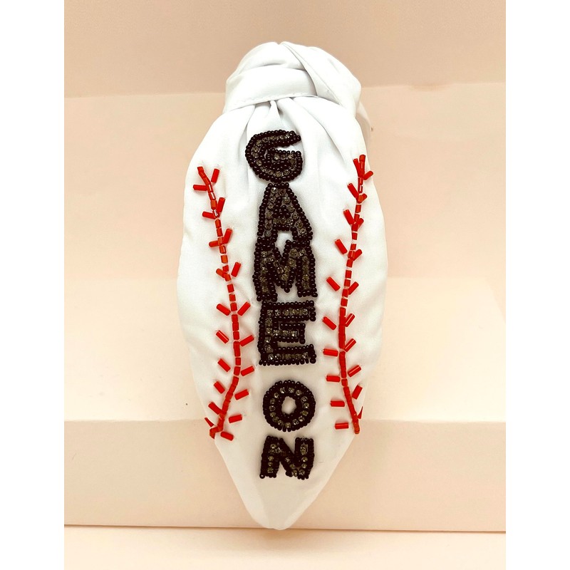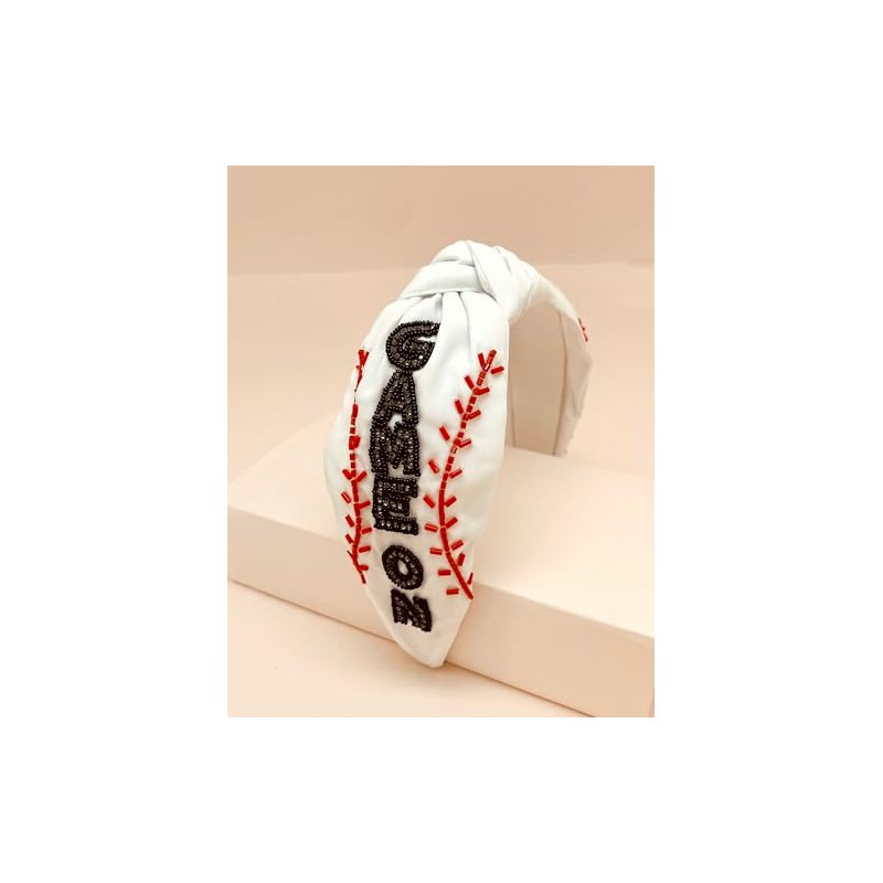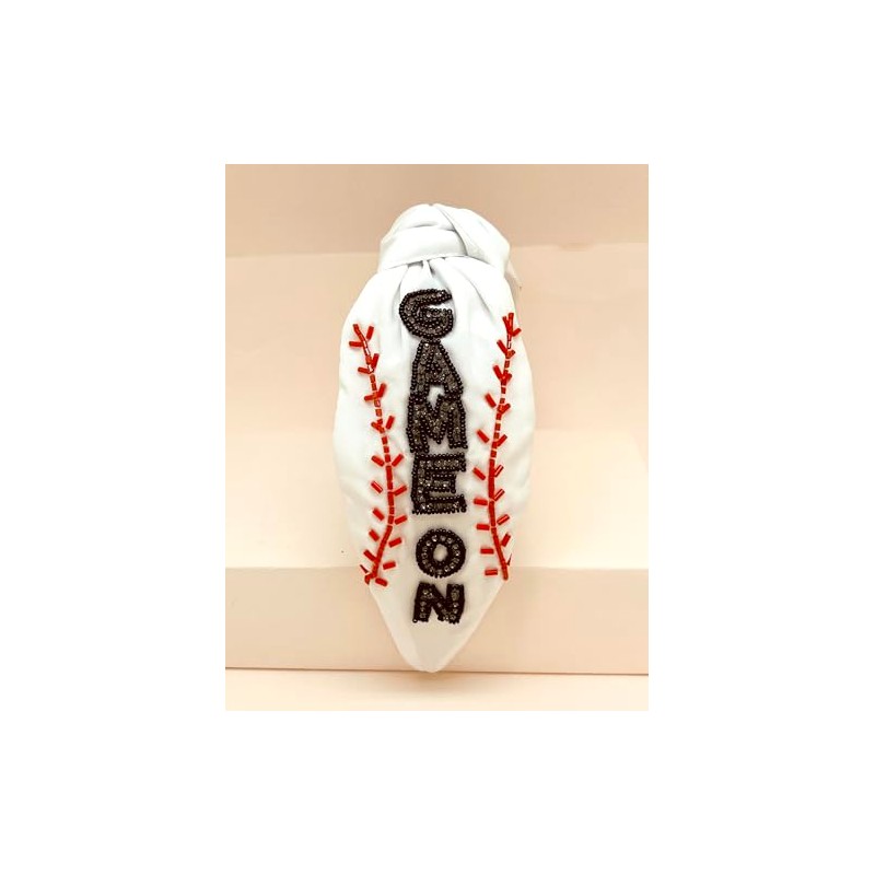 Miracle Collection Top Knotted beaded Baseball Golf Pickle Ball Tennis Game Day Headband with Embelishment for Preppy Comfy Accessories Gift for Sports Fans and Women (Game on-WT)