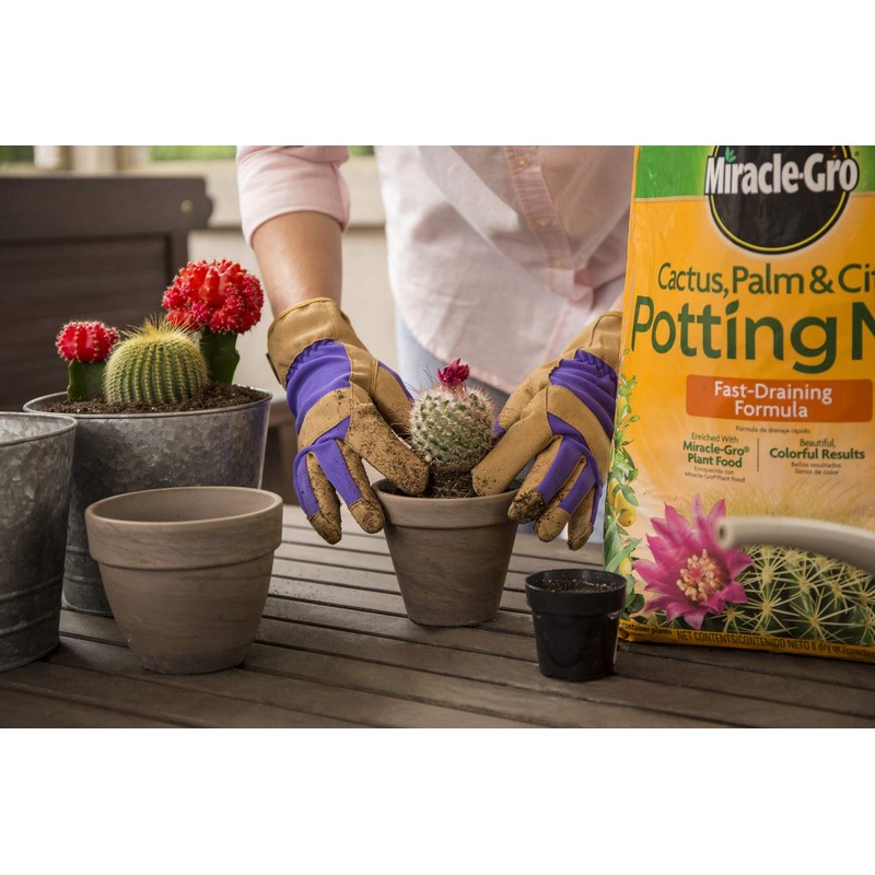 - Miracle-Gro Cactus, Palm & Citrus Potting Mix features a fast-draining formula and is enriched with Miracle-Gro Plant Food