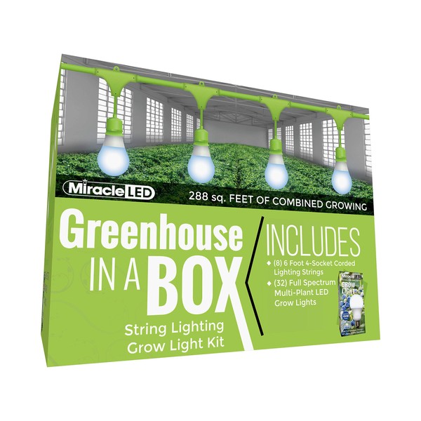 Miracle LED Greenhouse in a Box Daylight Plus Grow Kit for Indoor Plants - Includes 32 Absolute Daylight Plus Blue 150W Replacement Grow Light Bulbs & 8 4-Socket Corded Light Fixture