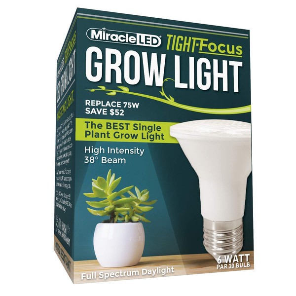 Miracle LED Tight Focus LED Full Spectrum Daylight Single Plant Growing Bulb 6W Replacing 75W Incandescent Grow Light,White