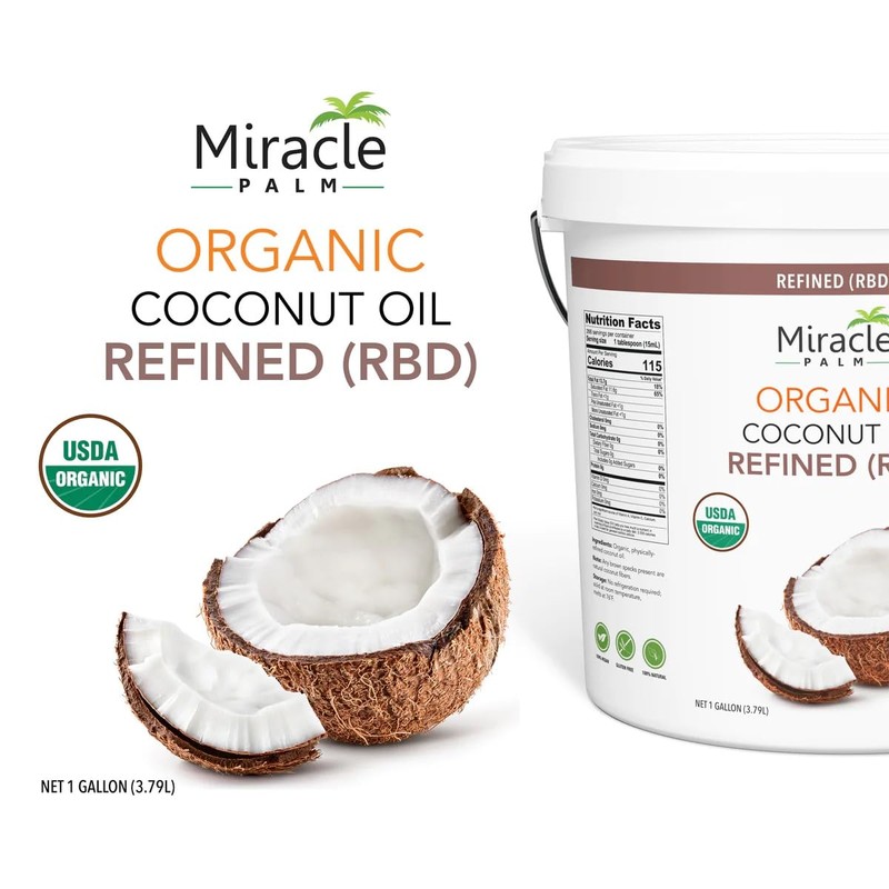 Miracle Palm Organic Refined Coconut Oil Gallon - USDA RBD, 1 Gallon (Pack of 2) - Gluten Free, Vegan, Paleo - Ideal Coconut Oil for Cooking, Baking, Frying, Hair & Skincare - Tasteless & Deodorized