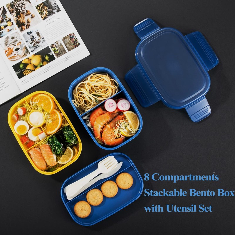 - Ideal Compartments & Extra Tableware -- Comes with spoon, knife, fork. 8 separate compartments portioned perfectly according to your daily nutrition,meet your daily use for school,work,picnic,fitness,lose weight or food storage.this bento box containers keeps whatever you like to eat fresh and odorless.