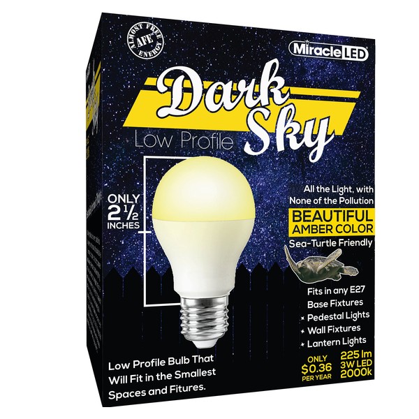 MiracleLED 604589 Dark Sky 3W Low Profile Bulb (2-Pack), Amber