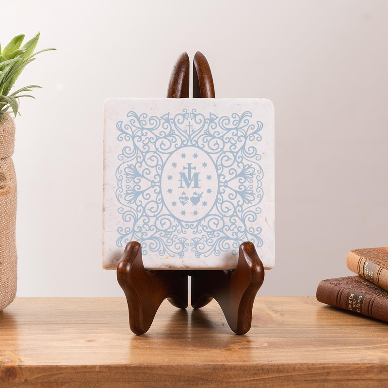 Miraculous Medal Filigree Stone Coaster | Catholic Home Décor | Absorbent & Durable | Marian Devotional Gift | Elegant Faith-Inspired Drink Coaster