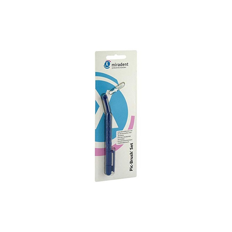 miradent Pic-Brush® Set Interdental Brush Holder Blue with 1 Brush | Conical Insertion Connector for Secure Hold | Ergonomic Handle | Ultra Fine Bristles | Also for Cleaning Brackets & Bridges