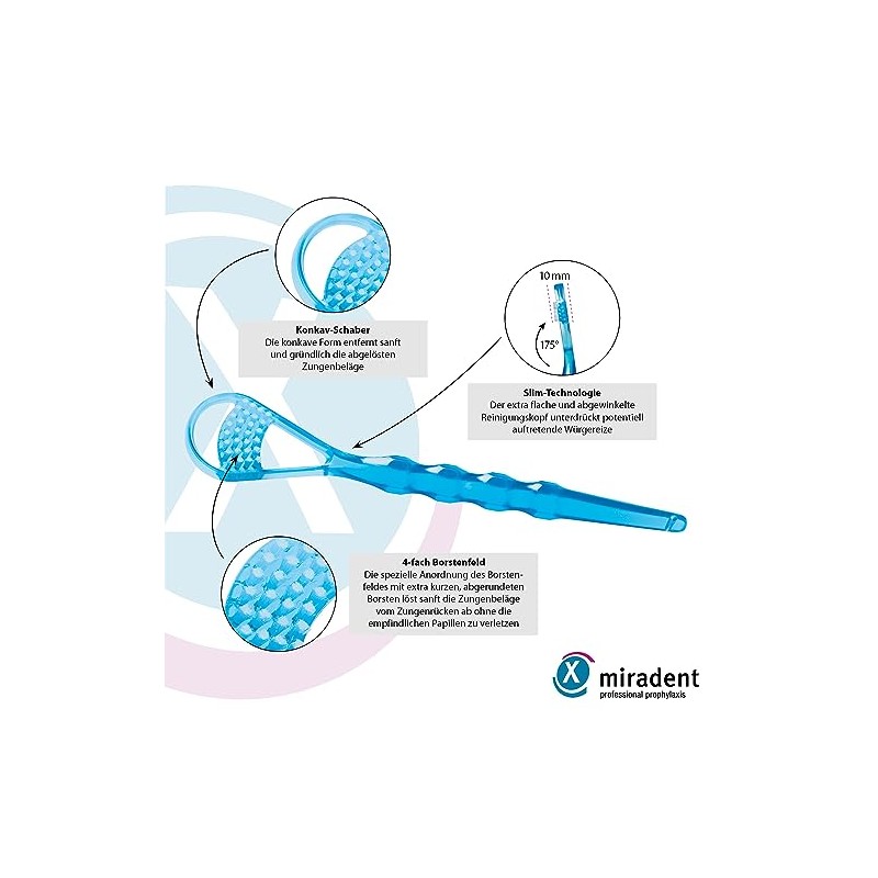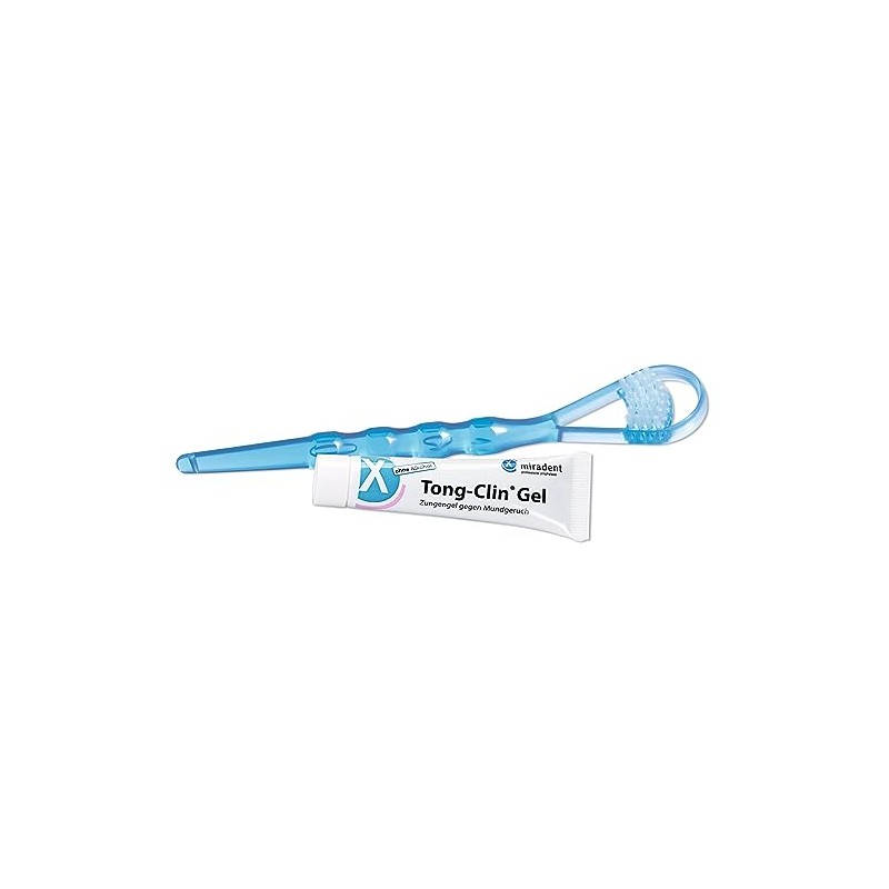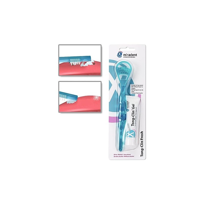 - Tongue cleaning set contains 1 x miradent Tong-Clin Deluxe tongue cleaner including 1 x miradent Tong-Clin tongue cleaning gel 15 ml