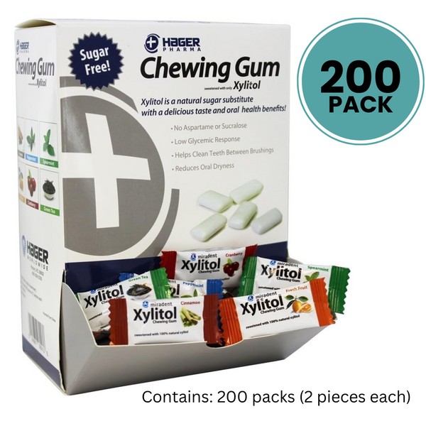 Miradent Xylitol Chewing Gum with Dispenser Box 200-Pack (2-CT Each), Assorted