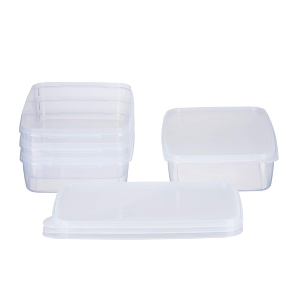 MiraHome Food Storage Container, Freezer Container, 2 Litres, Rectangular, Flat, 28 x 18 x 6.5 cm, Set of 4, Transparent,