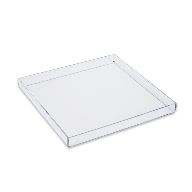 - Tray Outside Dimensions measures 10 inches square x 1 inch high x 1/8 inch thick clear acrylic